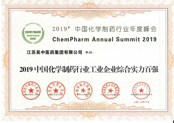 凭借过硬的产品质量、诚信为本的经营管理与持续推进的品牌建设,江苏吴中医药集团有限公司荣获“2019中国化学制药行业工业企业综合实力百强”。