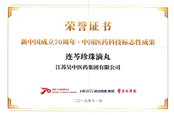 医药经济报在大会期间隆重发布了“致敬70载光辉岁月——新中国成立70周年医药产业成果巡礼”活动,通过礼赞行业标杆,汇聚产业升级力量,助推产业创新发展。其中,江苏吴中医药集团有限公司“连芩珍珠滴丸”入选“中国医药科技标志性成果”。