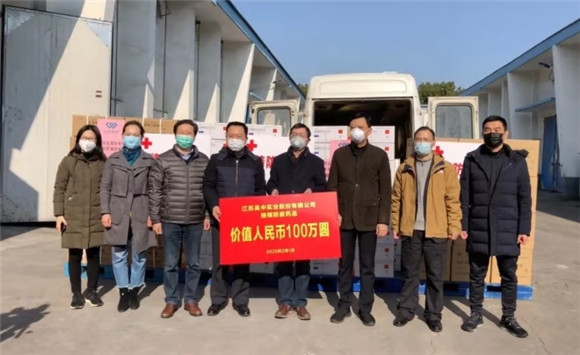 2月1日下午,我上级公司江苏吴中实业股份有限公司向苏州市红十字会捐赠价值100万元的防疫药品,用于支援新型冠状病毒感染的肺炎疫情的防控工作。捐赠仪式在苏州市防疫指挥部举行,苏州市红十字会党组成员、副会长张献忠,苏州市工信局金晓虎副局长接受捐赠,市红十字会向江苏吴中副董事长、江苏吴中医药集团有限公司董事长姚建林颁发《荣誉证书》,对我公司积极承担社会责任给予了充分肯定,并表示,市红十字会在接受捐赠后将在第一时间按苏州市疫情防控指挥部的调度指令,将防疫药品送到疫情防控最需要的地方。