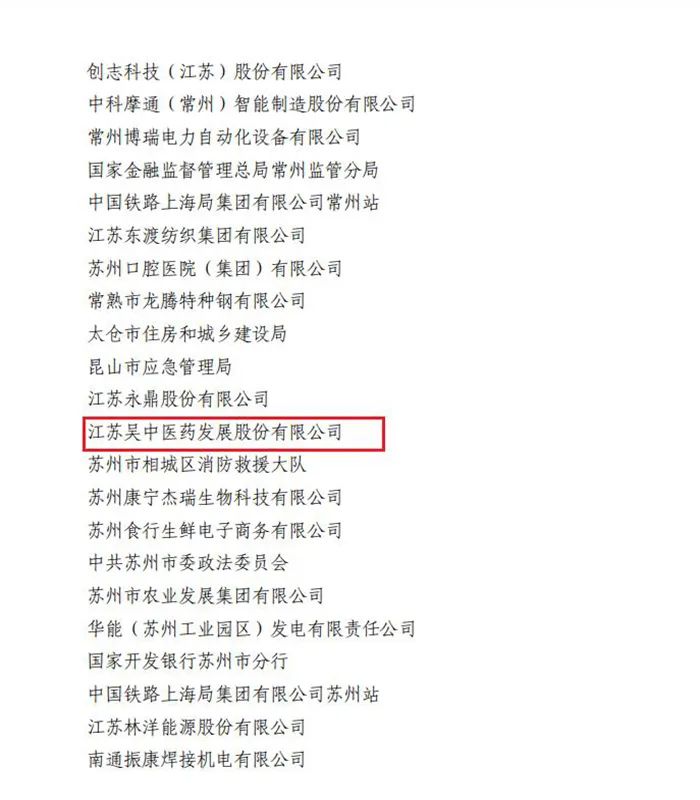 4月23日,根据《江苏省总工会关于表彰 2024年省五一劳动奖和省工人先锋号的决定》(苏工发〔2024〕3号),江苏吴中医药发展股份有限公司获评江苏省五一劳动奖状。