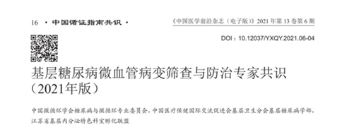 2021年6月,中国微循环学会糖尿病与微循环专业委员会等发起、东南大学附属中大医院孙子林教授牵头,《基层糖尿病微血管病变筛查与防治专家共识(2021年版)》正式发布,旨在进行早期干预防治糖尿病及其微血管并发症,规范临床医师糖尿病微循环障碍诊疗,造福更多的糖尿病患者。