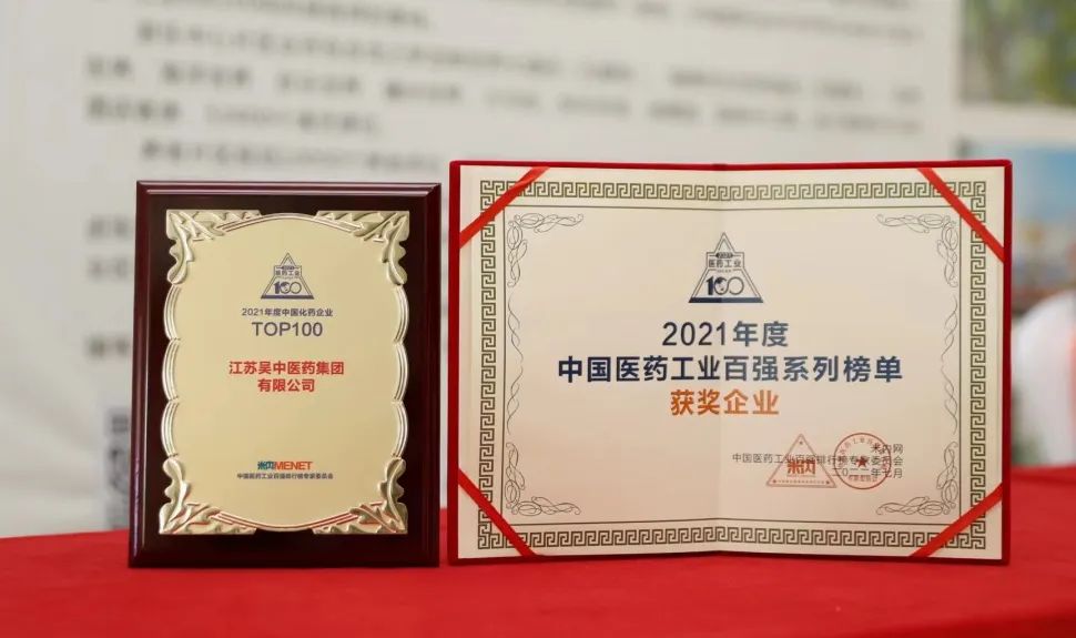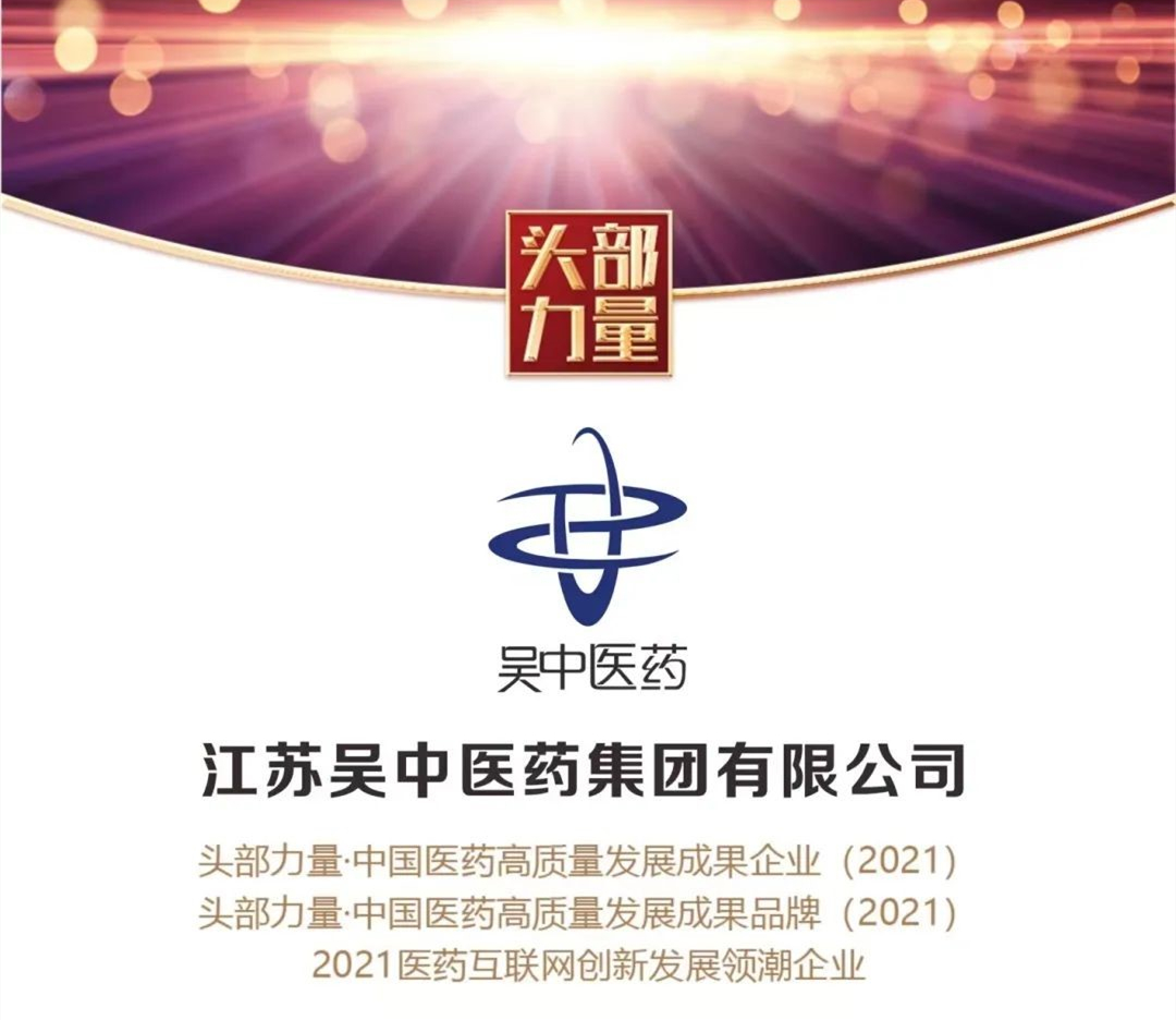 吴中医药获评头部力量•中国医药高质量发展成果企业(2021)