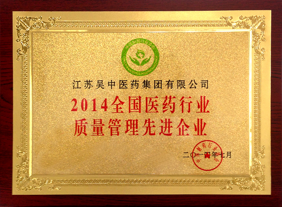 江苏吴中医药集团荣获“2014年全国医药行业质量管理先进企业”