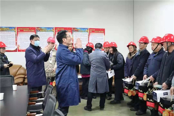 1月25日,农历大年初一早上八点,苏州吴中投资控股公司董事长、江苏吴中首席执行官钱群山,江苏吴中副董事长、江苏吴中医药集团董事长姚建林等带领公司总裁班子、应急服务小组成员等前往公司原料药基地,对春节期间加班加点抢抓生产,保证阿比多尔原料药供应的各级员工,表示衷心的慰问。