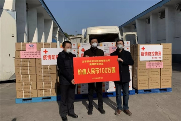 2月1日下午,我上级公司江苏吴中实业股份有限公司向苏州市红十字会捐赠价值100万元的防疫药品,用于支援新型冠状病毒感染的肺炎疫情的防控工作。捐赠仪式在苏州市防疫指挥部举行,苏州市红十字会党组成员、副会长张献忠,苏州市工信局金晓虎副局长接受捐赠,市红十字会向江苏吴中副董事长、江苏吴中医药集团有限公司董事长姚建林颁发《荣誉证书》,对我公司积极承担社会责任给予了充分肯定,并表示,市红十字会在接受捐赠后将在第一时间按苏州市疫情防控指挥部的调度指令,将防疫药品送到疫情防控最需要的地方。